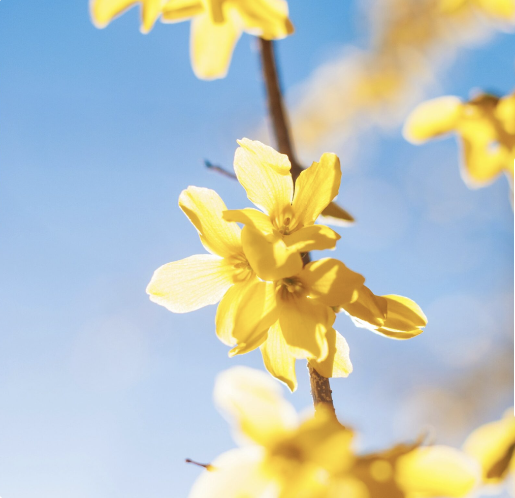 青い空を背景にした、たった一本のレンギョウのを目にするだけで、いのちは死よりも力強いのだと、十分に確信できます。