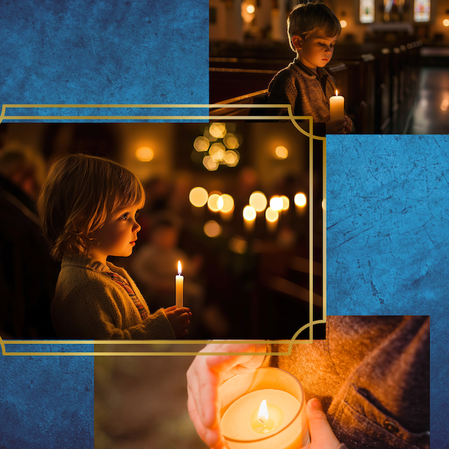 The darkness of the winter season guides children to gaze at the flame of candles. Their eyes glisten curiously, reflecting the waving flame. Serene smiles appear on their faces. The winter darkness teaches them the joy of contentment, being comfortably in our shelters in the cold air, and knowing how beautiful the light is and how much it contributes to it.