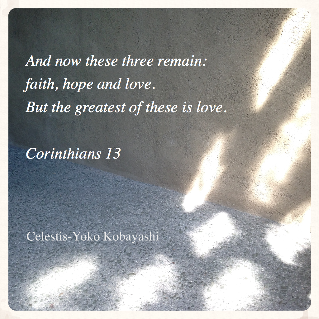 And now these three remain: faith, hope and love. But the greatest of these is love.