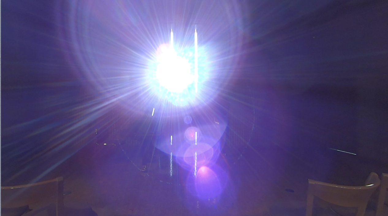 In August, a colleague in the meditation center in Utrecht passed away. I was then in my hometown of Japan, doing the video recording. Just the moment I received this sad email in my inbox of email, a video camera caught the blue light. The picture of the piano disappeared from the screen by this much light. I did not know then about his passing. I just wondered what was happening on my video camera. After knowing the news, I felt that his soul was perhaps then going through this light.